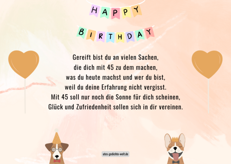 Hier sind einige schöne sprüche zum 45. Auch männer verdienen es gefeiert zu werden! Heut bist du 45 jahr. Lass dich von uns beglücken. Die 45 jahre sieht man bei dir kaum.